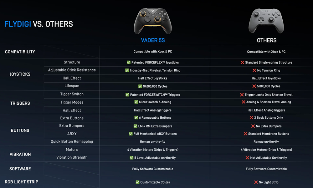 Flydigi VADER 5S Wired Controller for Xbox Series X|S, Xbox One, Windows